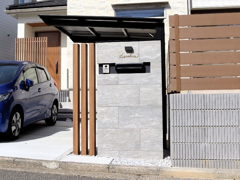 ボーダータイルでアクセントをつけた門柱